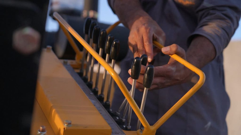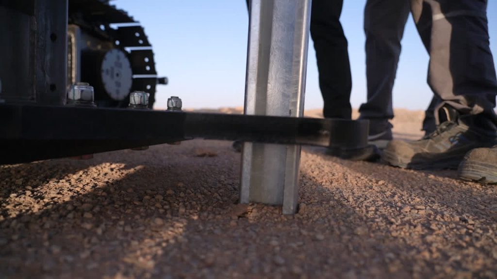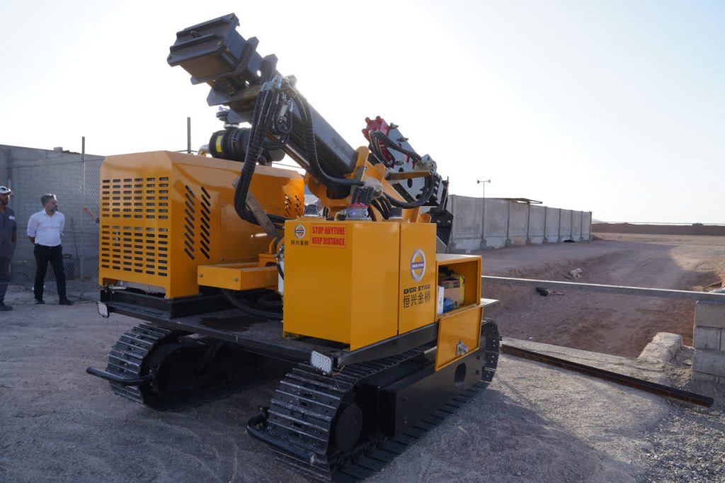 مهندس امید مهربان افزود: این دستگاه توانایی کوبش پایهها تا عمق پنج متر، با ۶۰۰ ضربه در دقیقه و قدرت 500 کیلو پاسکال را دارد. طراحی ویژه آن برای شرایط گرم و بیابانی از نوع (کولینگ تَر)، امکان اجرای روزانه بیش از ۲۵۰ پایه را فراهم میکند و نقش مهمی در تسریع عملیات پروژه دارد.